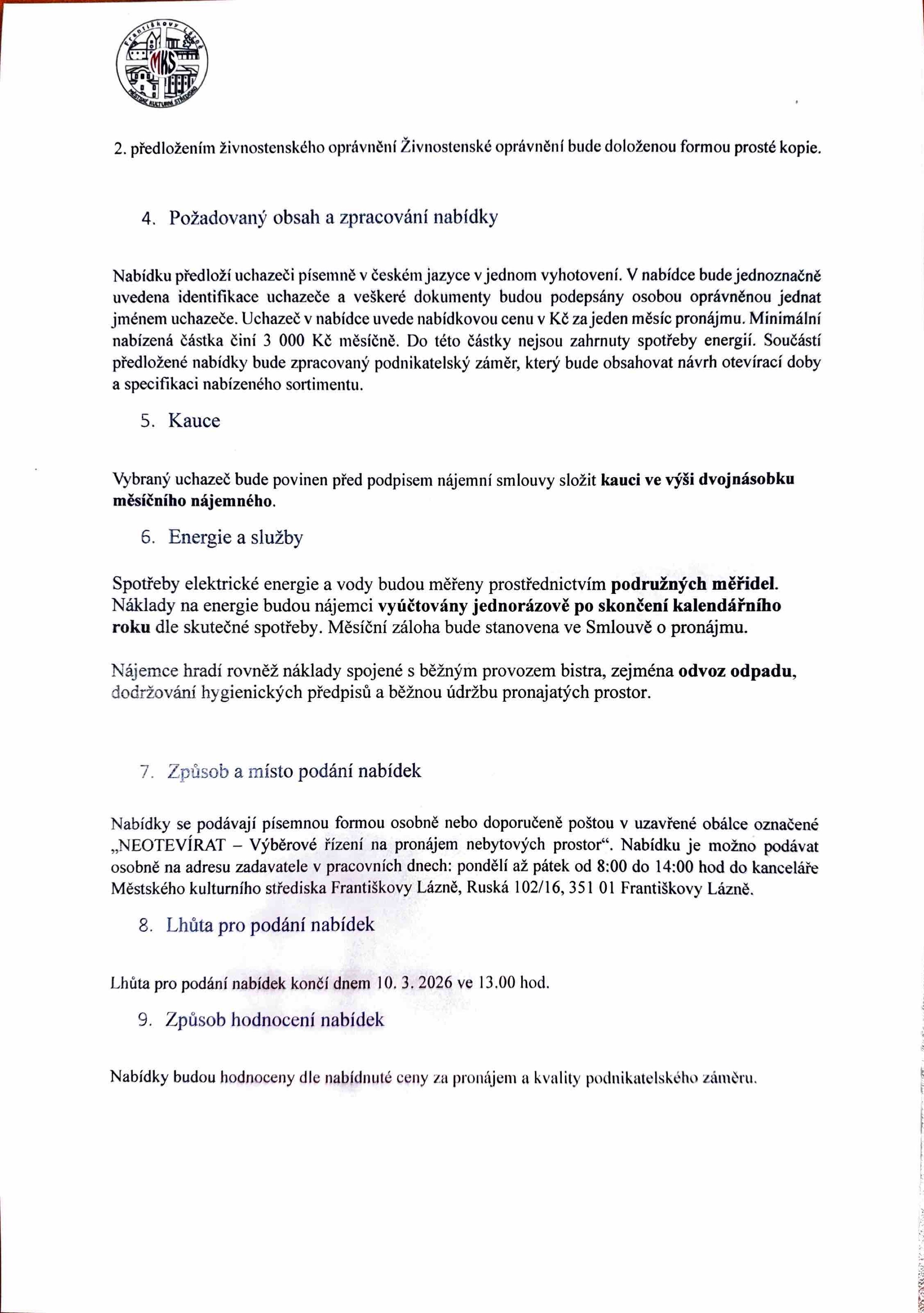 Výběrové řízení na pronájem nebytových prostor